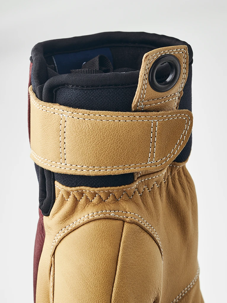 Short, supple freeriding glove designed for the best possible grip. Sewn in goatskin leather and cowhide with a warming synthetic lining. Ergo Grip construction with carefully placed seams follows the natural ergonomics and mobility of the hand.