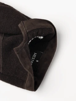 A stylish glove in wool jersey and supple hairsheep suede. A light, supple men’s glove with timeless style and beautifully worked details. Suede reinforcement for extra grip on the palm and between the fingers, and the leather around the wrist contrasts nicely with the knitted material. This glove is unlined, but the inside is brushed for light warmth on chilly autumn days.