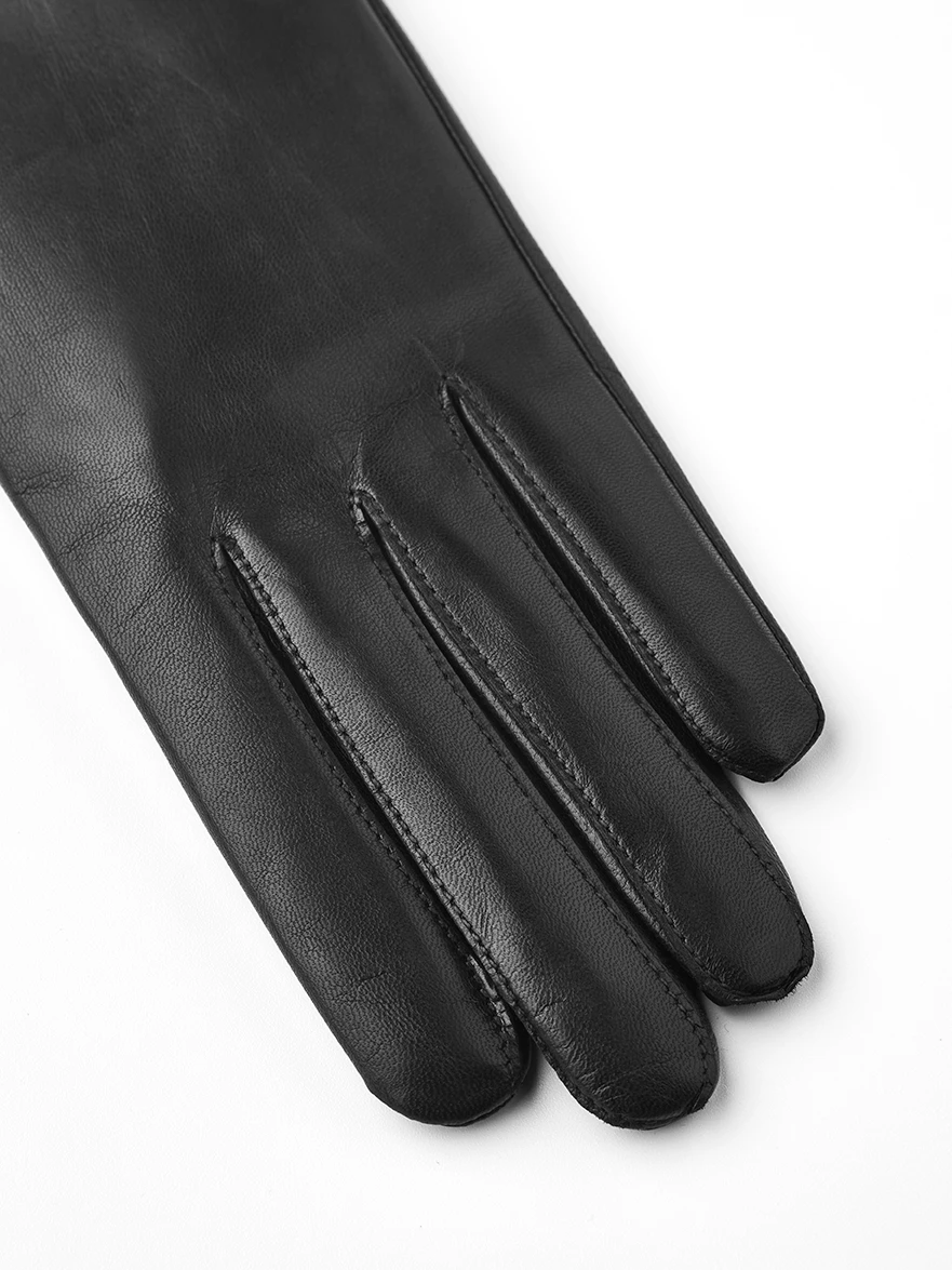 An elegant, elbow-length women’s glove sewn in high-quality lamb nappa leather from Italy. The design is minimalist and close-fitting, with half piqué seams around the fingers. A silk lining is warming and adds a soft, luxurious feel around the hand. A favourite glove that will add a timeless touch of finesse to every outfit, party or everyday wear.
