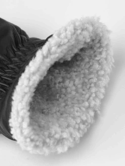 An elegant, warm, lambskin-lined leather mitten. A robust yet luxurious mitten for the coldest days of the year. Sewn in exclusive, Italian lamb nappa with side gussets for extra volume and warmth.