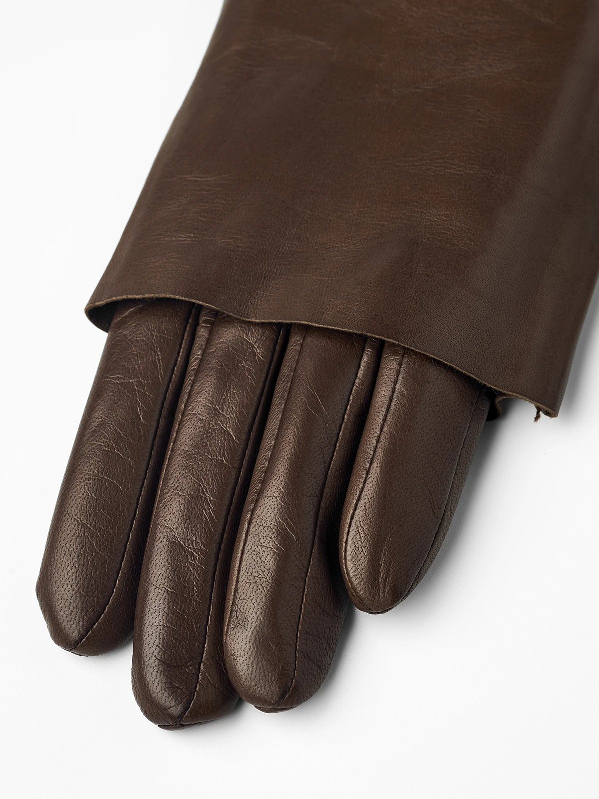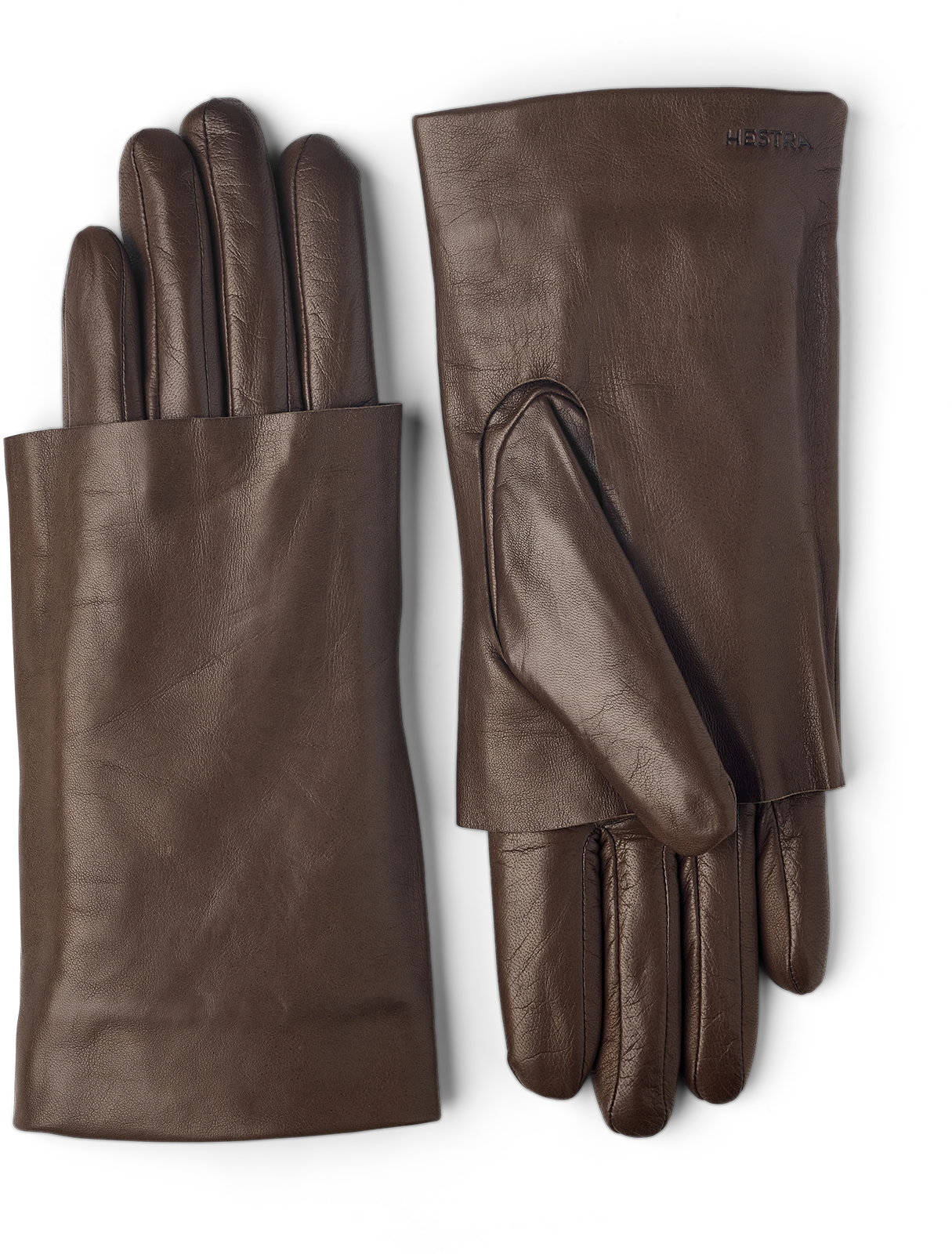 A stylish leather women’s glove with a soft, knitted wool lining. Sewn in exclusive Italian lamb nappa with a close fit. This is a slightly longer model with a wide folded ‘cape’ for an exciting look.