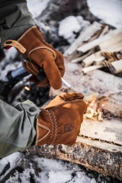 A hardwearing, unlined leather glove for hiking, hunting and wilderness adventure. Sewn in sturdy nubuck cowhide leather with fire-retardant thread. A favourite glove for scouting and bushcraft where you need protection from branches and terrain combined with good grip on an axe and other tools.